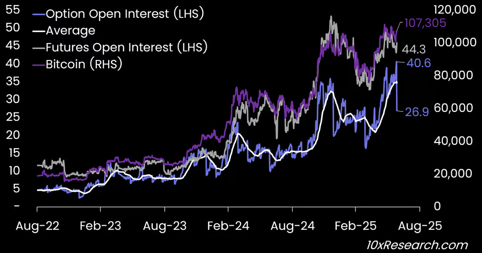به گفته مارکوس تیلن (Markus Thielen)، تحلیلگر ارشد شرکت ۱۰ ایکس ریسرچ (10X Research)، بازار آپشنهای بیت کوین طی روزهای اخیر شاهد سقوطی چشمگیر بوده است. ارزش اسمی قراردادهای آپشن بیت کوین تنها در چند روز گذشته ۱۳ میلیارد دلار کاهش یافته که معادل ۳۳٪ افت است. با وجود این تحول بزرگ، کمتر کسی درباره آن صحبت میکند و به نظر میرسد بازار بیصدا در حال تغییر فاز باشد.
