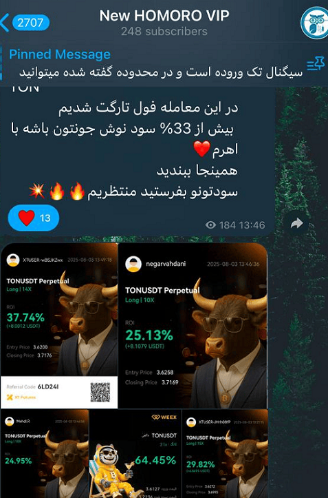 برای این منظور کانال سیگنال ارز دیجیتال هومورو در تلگرام، بستری را برای ارائه ی سیگنال های روزانه فراهم کرده است. این سیگنال ها که توسط متخصصان با تجربه تهیه می شوند، با عملکردی کاملا شفاف ارائه می گردند.