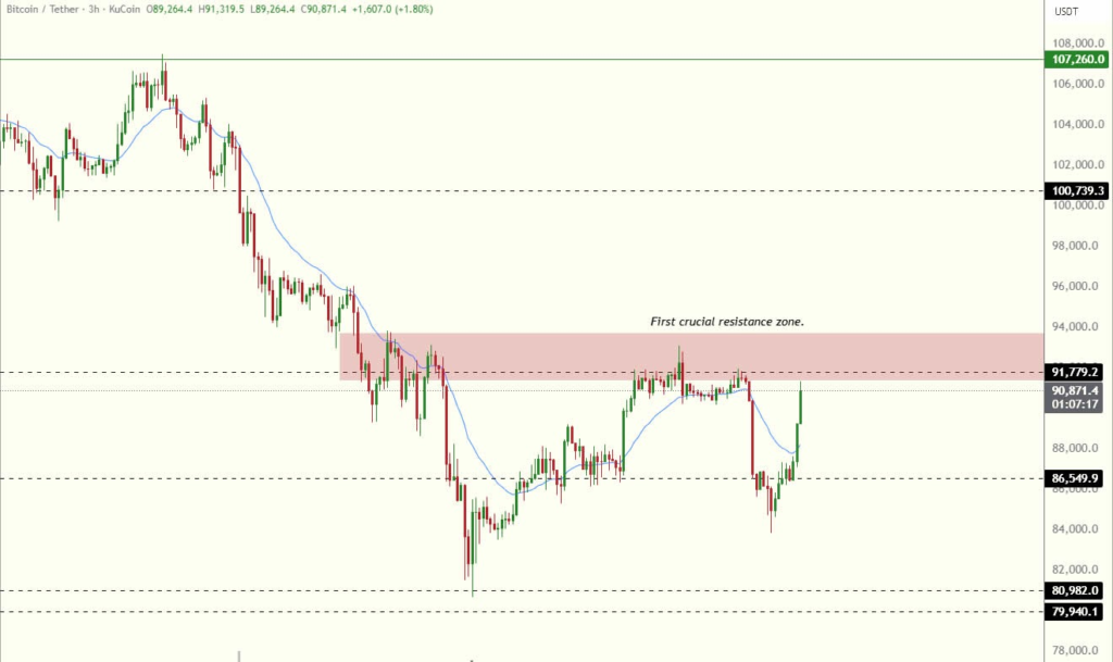 به گزارش میهن بلاکچین، قیمت بیت کوین پس از سقوط تا سطح ۸۴٬۵۰۰ دلار، دوباره به بالای ۹۲٬۰۰۰ دلار رسید و برخی تحلیلگران بازار ارزهای دیجیتال اکنون هدفهای شش رقمی برای این رمزارز در نظر میگیرند.