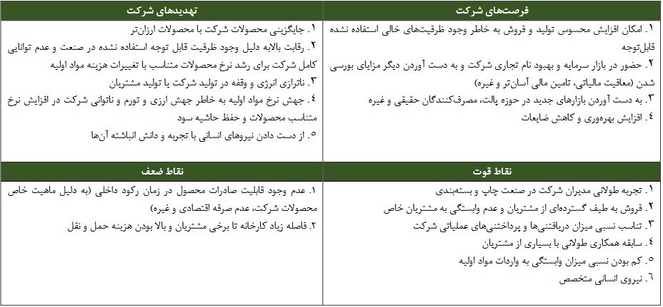 نقاط ضعف و قوت فرصتها و تهدیدها
