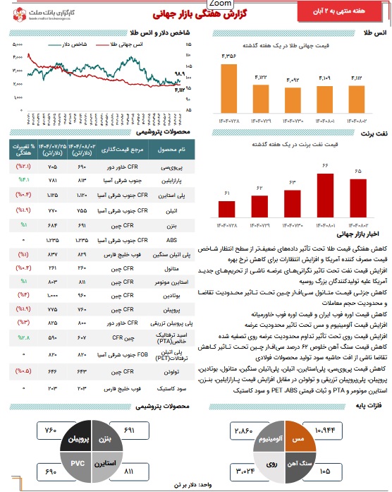 آخرین وضعیت بازارهای جهانی از جمله قیمت طلا، نفت، روند فلزات پایه و … از سوی کارگزاری بانک ملت اعلام شد.